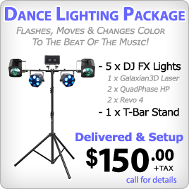 Whether you are just looking to rent a couple sound active lights for your social or looking for an awesome light show for a massive dance party, we've got the equipment that will make your event epic!